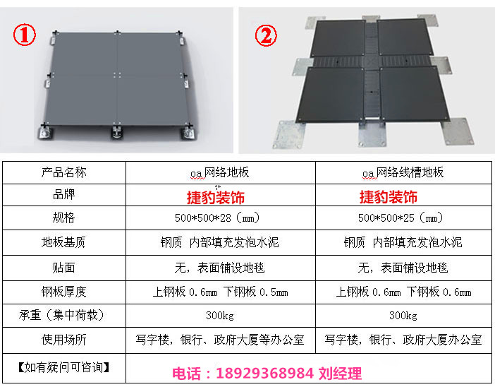 OA網絡地板一般可分為普通的OA網絡地板與自帶線槽的OA網絡地板。具體規格詳見下表。 產品介紹: OA網絡地板四角獨立支撐結構,扣槽式線槽蓋板,地板的上板為超硬質鋼板,經拉伸后點焊成形,下板為拉伸級鋼板地板表面經過到點環氧樹脂塑處理,內腔填充發泡水泥填料,支架為鍍鋅及鑄鋁合金結構,高度可調節并能自鎖,地板四周成型有切邊與柳接兩種。 OA智能網絡地板由高強度全鋼裸地板,全鋼支架,抗靜電地板毯或其他貼面組成。裸板內腔填充水泥, 多頭點焊焊接成型,機械性能高,承載力大,防火,防潮。 產品特點: 1、全鋼組合結構,強度高,耐沖擊能力強; 2、尺寸精度高,互換性好; 3、表面靜電噴涂處理,耐腐蝕性能佳,使用壽命長; 4、防火,防水,防塵; 5、死角固定,防止地板滑移,步行感好; 6、出線口模具成型,配線容易,地插座安裝更方便; 7、下部空間可作為空調通風用; 8、對超重設備而言,只要在地板下增加之家,技能解決承載問題; 9、拆裝方便,可重復利用。 適用范圍: 適用于5A級智能化樓宇、5A級寫字樓、智能辦公室、控制室、機房、數學樓及有防塵防水及需要架空,網絡綜合布線的場合。 產品型號及參數: 聯系電話:18929368984 劉經理