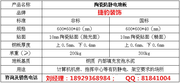 陶瓷貼面的防靜電地板主要有以下幾種規格型號:
